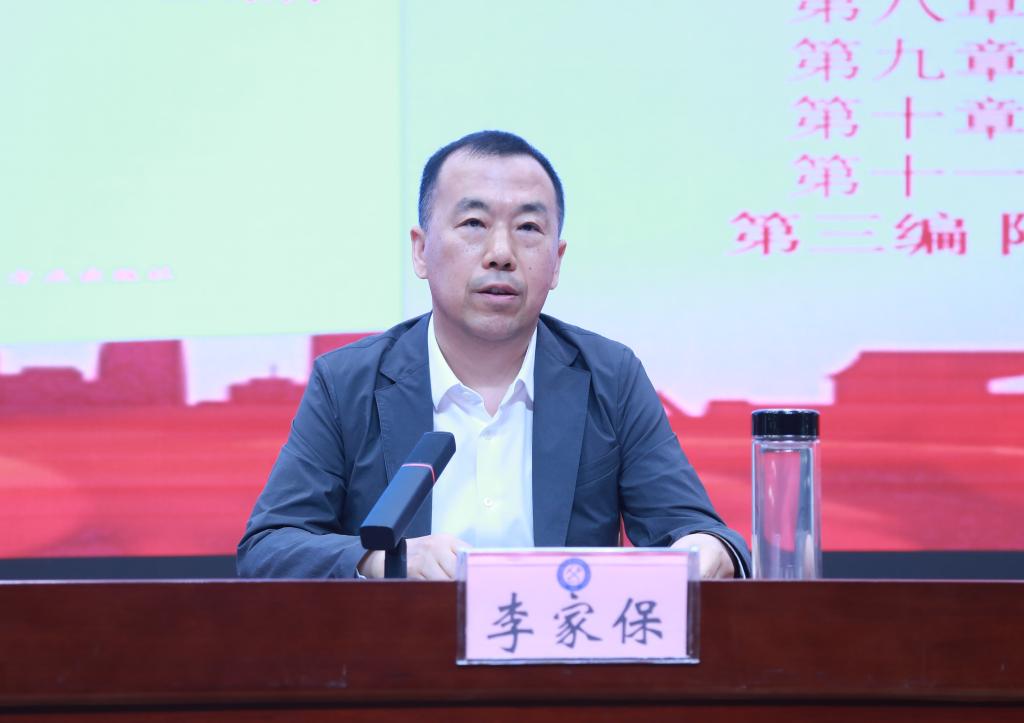 郭永存对李家保到校作辅导报告表示感谢。他指出,学校党委举办党纪学习教育读书班,旨在贯彻落实党中央关于开展党纪学习教育的统一部署、省委工作安排和省委教育工委具体要求,主要任务是坚持以习近平新时代中国特色社会主义思想为指导,深入学习领会习近平总书记关于党的自我革命的重要思想,认真学习新修订的《中国共产党纪律处分条例》,通过专题辅导、个人自学和交流研讨等方式,准确掌握《条例》主旨要义和规定要求,强化纪律意识、加强自我约束、提高免疫能力,自觉当好学纪、知纪、明纪、守纪的表率,始终做到忠诚、干净、担当,为学校推动“双一流”创建再出发提供坚强政治保障。