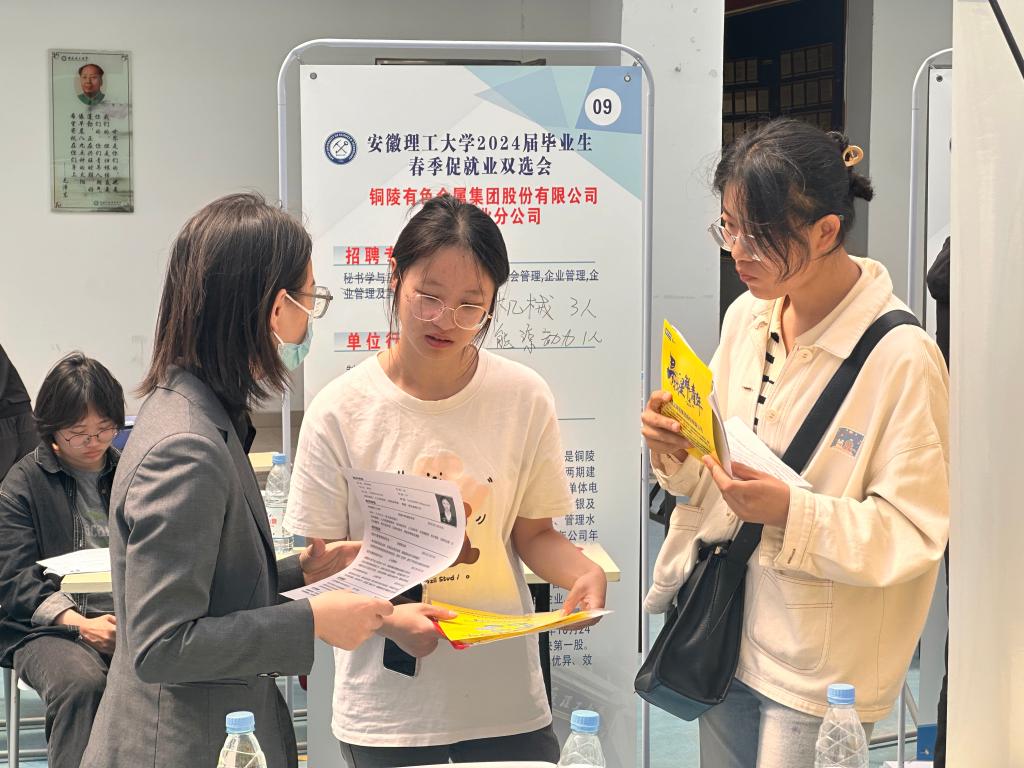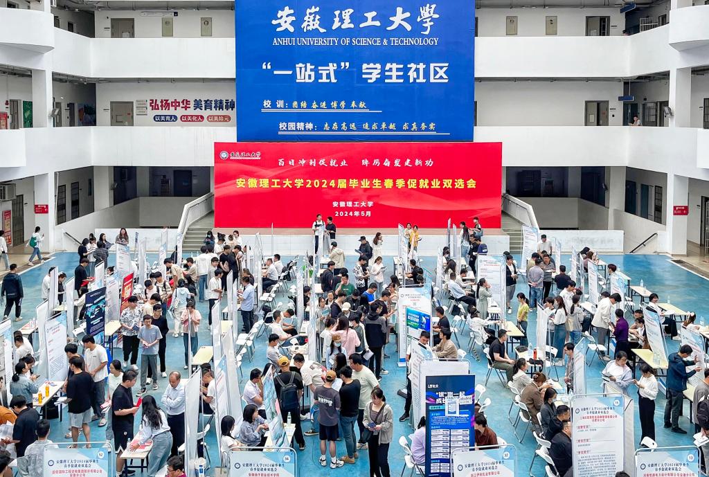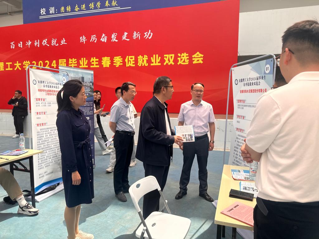 为认真落实教育部2024届高校毕业生春季促就业攻坚行动精神要求,持续为毕业生就业搭建平台,5月15日上午,学校在厚德馆大厅成功举办“百日冲刺促就业 踔厉奋发建新功——安徽理工大学2024届毕业生促就业双选会”。校党委常委、副校长董雨到现场详细了解招聘情况,询问用人单位对学校专业设置和人才培养等方面的意见建议。