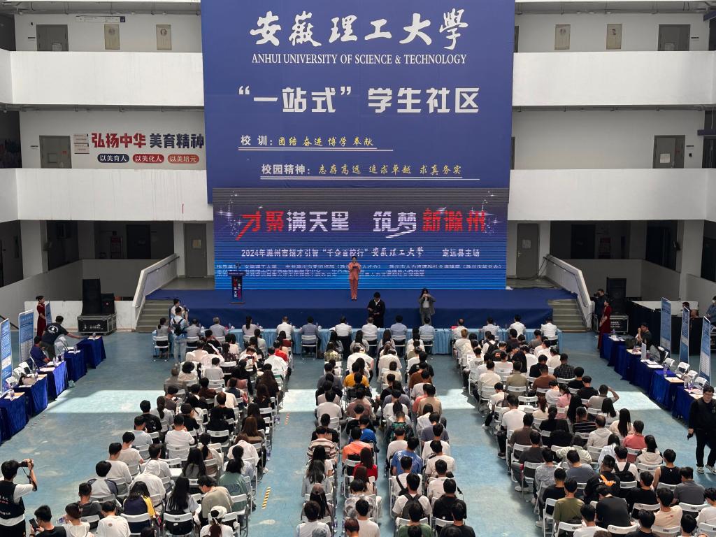 交流活动前,滁州市在学校厚德馆大厅隆重举行“才聚满天星·筑梦新滁州”宣传推介暨毕业生招聘活动。