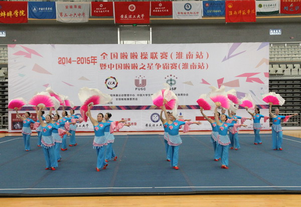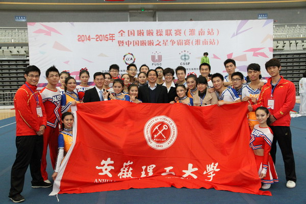11月8日至9日,由国家体育总局体操运动管理中心、中国大学生体育协会、中国中学生体育协会共同主办,安徽理工大学及全国啦啦操委员会承办的2014-2015年全国啦啦操联赛(淮南站)暨中国啦啦操之星争霸赛(淮南站)在我校正式开赛。本次赛事共有来自安徽和周边省市的60支代表队1186名啦啦操选手参赛,我校获得优异成绩。