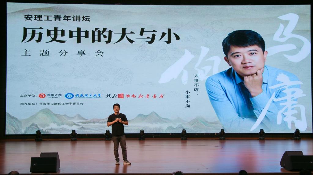 为深入学习贯彻习近平文化思想,引导广大安理学子进一步坚定文化自信,提升人文素养,厚植家国情怀,6月3日下午,知名作家马伯庸应邀做客安理工青年讲坛,在大学生创新创业会议中心以“历史中的大与小”为主题分享了自己传奇又极具色彩的文学创作经历。800余名师生参加了此次分享会。