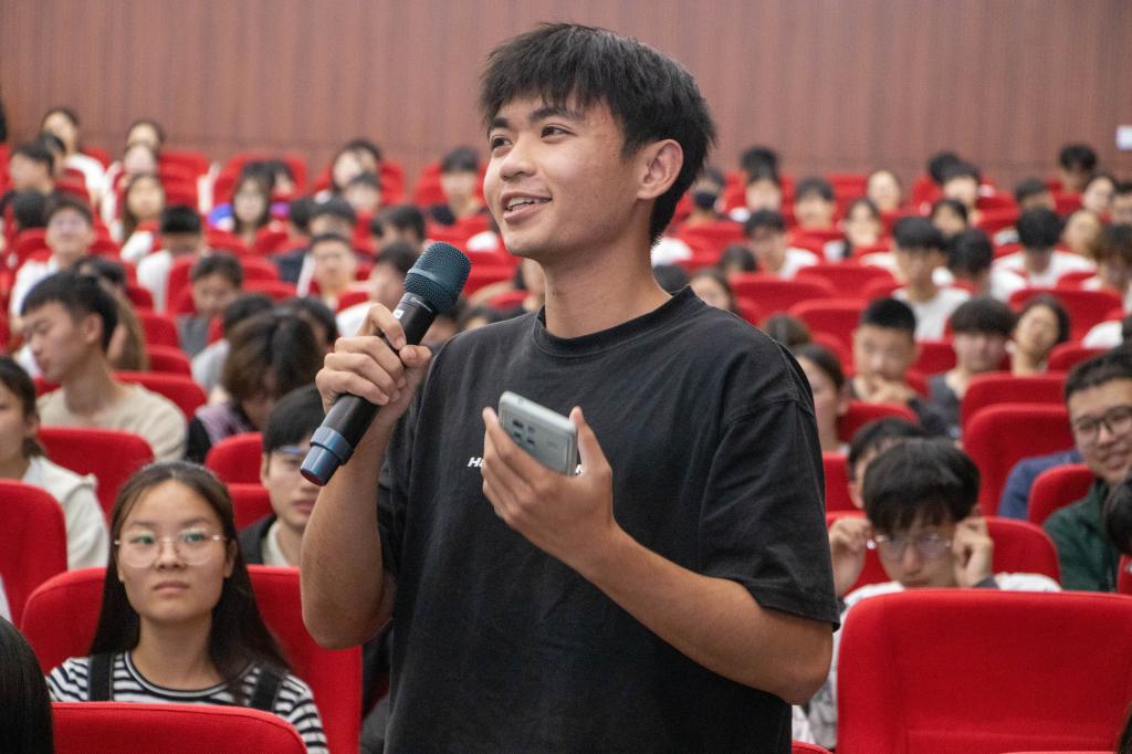 互动环节,他结合自身经历解答了同学们在学习与生活中的困惑,向同学们传授了独特的思考方式和写作手法,鼓励青年学子要专心致志、砥志研思。他奇趣的经历、不凡的见闻、风趣的谈吐、广博的知识赢来全场阵阵掌声。