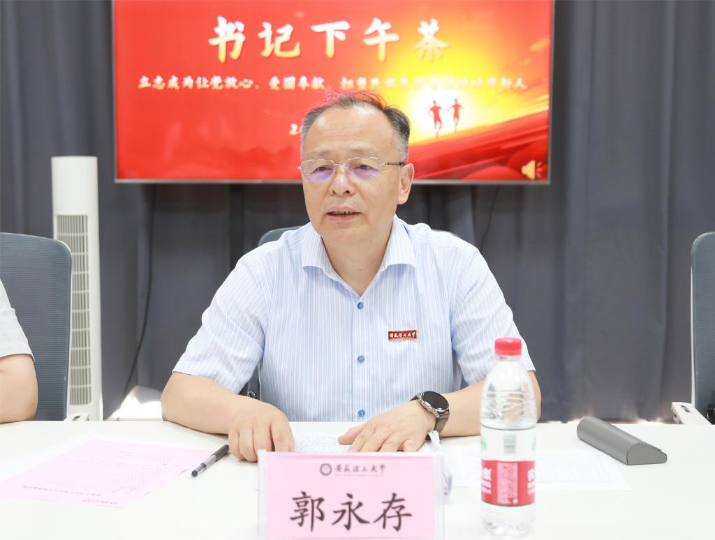 在茶叙会现场,郭永存认真听取参会毕业生代表的发言后,对同学们在学校大熔炉中锤炼成为国家和社会需要的德智体美劳全面发展的人才表示热烈祝贺,对他们即将踏上新的人生征程表达美好祝福。