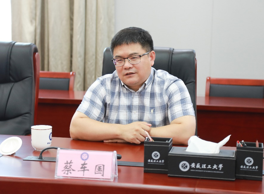 袁亮首先对蔡车国教授一行表示欢迎。他全方面介绍了安徽理工大学发展沿革和建设成就并指出,安徽理工大学在习近平新时代中国特色社会主义思想指引下,按照省委省政府决策部署,推进“双特色”发展,打造优势学科,争做“单打冠军”,推动专业优化,服务传统产业转型升级,对接新兴产业创新发展,着力服务支撑新质生产力发展,取得的一系列成就。袁亮表示,安徽理工大学始终致力于推动科技创新和人才培养,不断提升学校的综合实力和国际影响力,打造优势学科。袁亮指出,职业安全健康是学校学科的优先发展方向,尘肺病也是职业健康的重点研究方向。多年来,学校在煤矿粉尘防控和职业安全健康方面进行了大量研究,旨在从源头上控制尘肺病的发生以及寻找治疗尘肺病的有效方法。在职业安全健康领域,学校已经取得了一系列成果,为尘肺病等职业病的科研提供了有力的学术支撑。袁亮院士表示,安徽理工大学将继续加强在职业安全健康领域的研究力度,他希望能够与国科大和北科生物在科研项目和推动医疗成果产业化等方面开展更加广泛的合作,共同推动职业安全健康领域的发展。