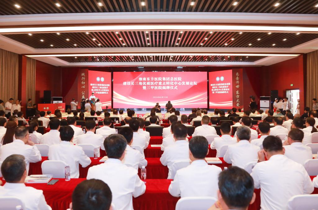 揭牌仪式上,郭永存、袁亮等与会领导嘉宾共同为淮南东方医院集团总医院国家三级甲等医院综合医院揭牌。