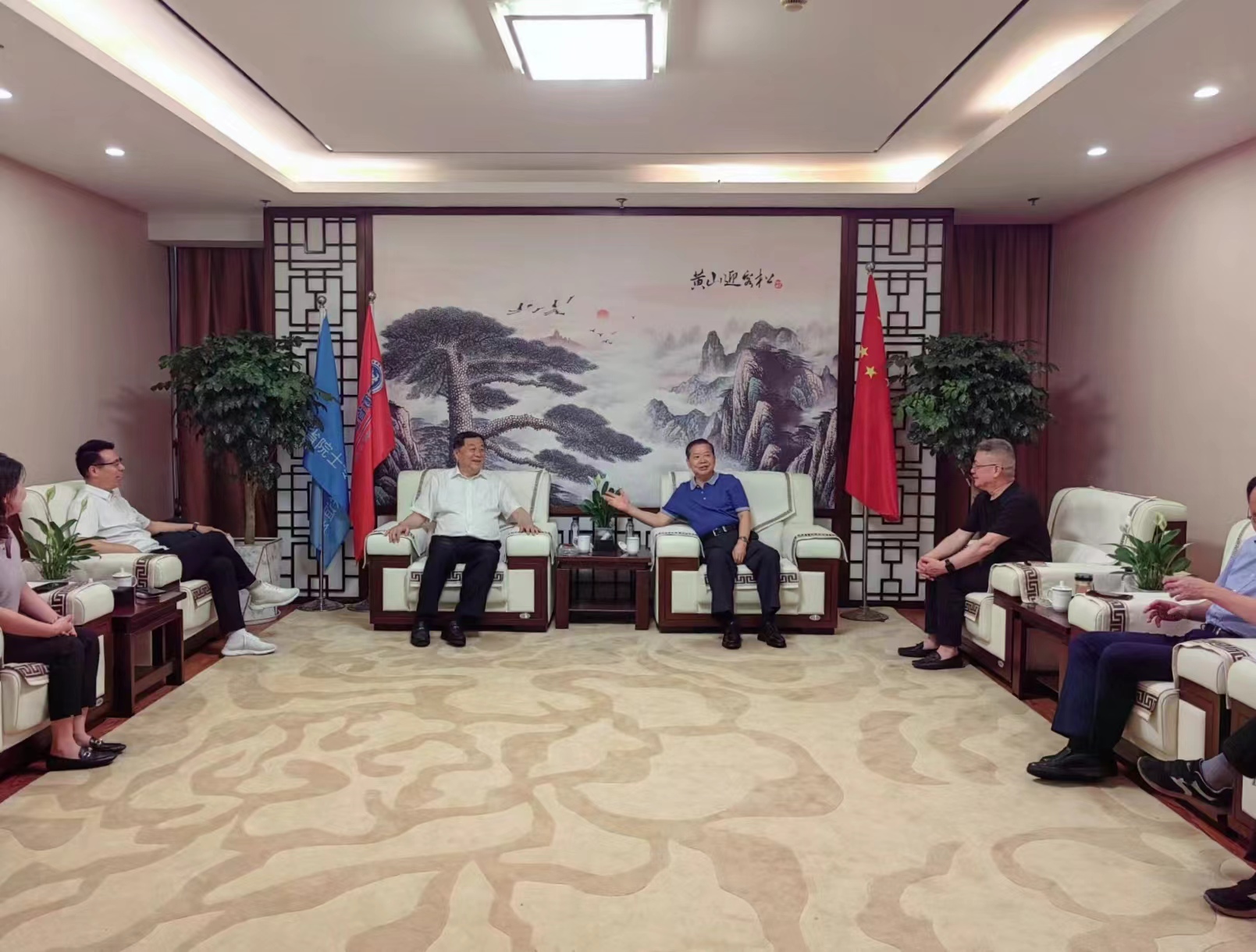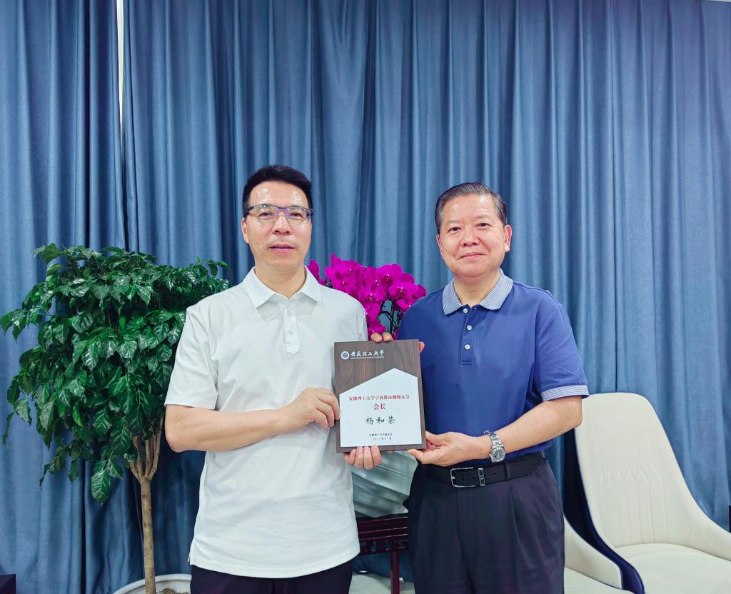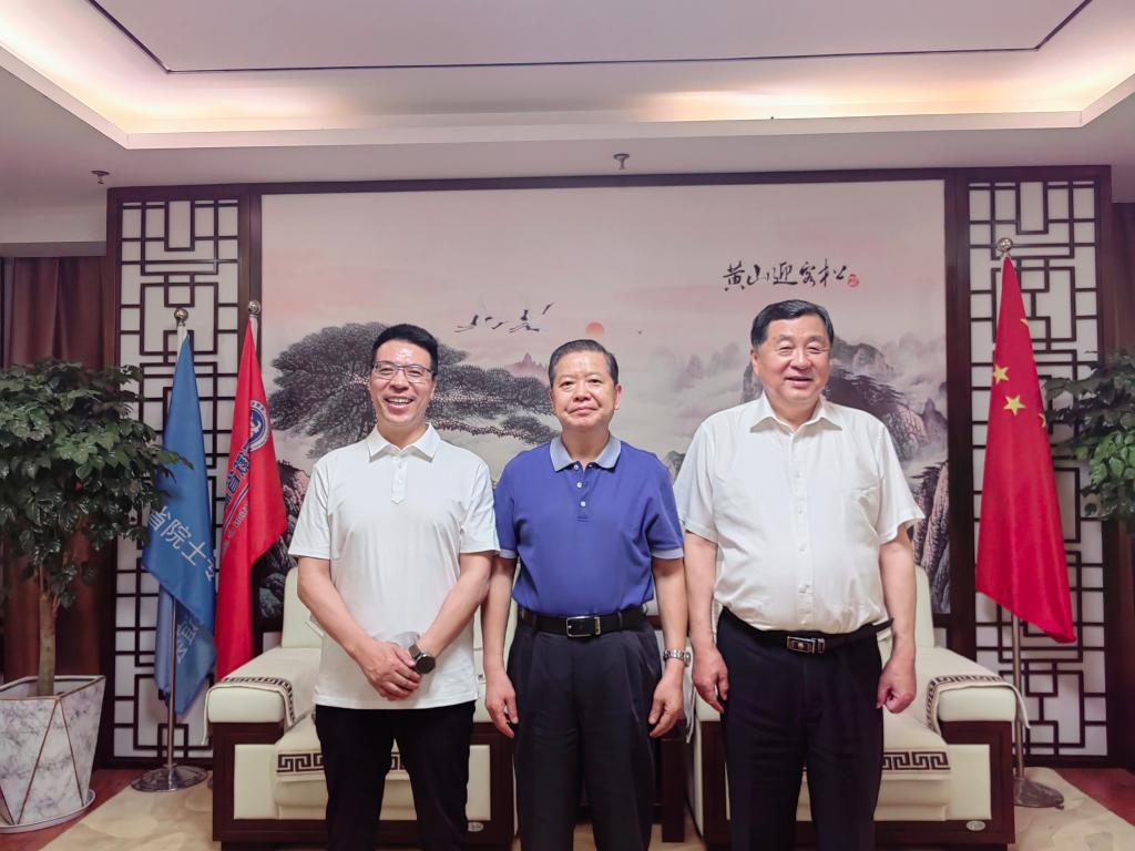 6月15日下午,校党委副书记、校长、安徽省院士专家联合会会长袁亮院士在合肥院士大厦亲切会见中国水泥协会会长、海螺集团原党委书记、董事长、机械78级校友高登榜,宁波都市圈校友会会长、宁波市工商联副主席、中哲集团董事长、矿建78级校友杨和荣一行。