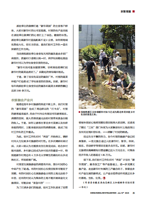 文章强调,面对新华村村集体经济收入每年不足10万元、村里产业发展的质量效益不高等现实发展难题。张文涛坚持问题导向,靶向精准发力,始终把巩固脱贫攻坚成果、基础设施建设、农村环境整治、产业振兴等放在工作的重中之重,带领驻村工作队协同村“两委”,以党建为抓手,不断解放思想,积极引进人才,认真研读农村发展新政策,以“安新菜园”项目建设为新华村产业发展突破口,确立发展思路,争取多方支持,破解制约瓶颈,取得发展成效,为新华村产业发展积累了第一桶金,为后期面条厂建设、科技示范园建设、草莓基地建设、露营地建设等打下坚实基础,走出了新华村专属的三产融合新路径,探索出乡村产业发展的新模式,让产业示范带动作用真正在乡村落地、生根、发芽。