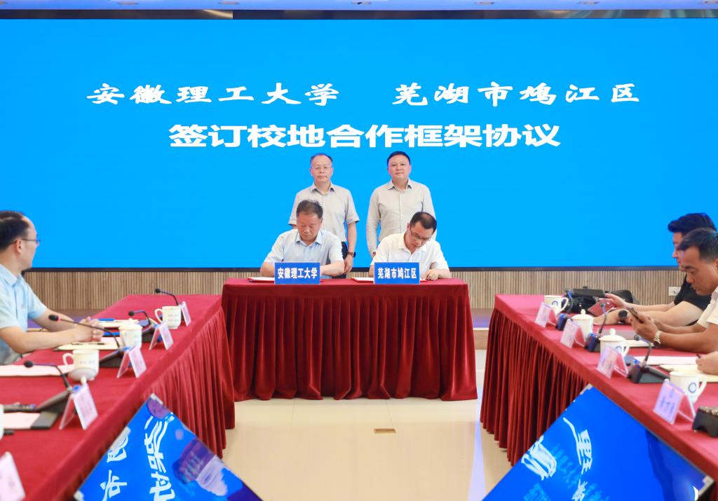 会上,学校与芜湖市鸠江区人民政府签订了校地合作框架协议,双方将在人才培养、平台共建、课题研究、就业创业服务等领域开展全方位合作。