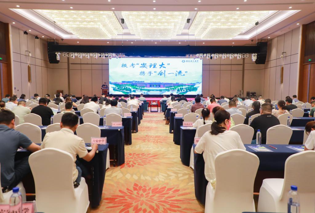 郭永存首先对前来参会交流的六安市教体局、六安市6所高中的领导老师表示欢迎!他围绕“为什么报考安理大”“怎样报考安理大”两大主题,生动阐述了安徽理工大学作为省属高校的五个“唯一”、五个“最”。从宏伟的办学目标、深厚的办学底蕴、精准的办学路径、鲜明的办学特色等方面全面介绍了学校的发展情况,重点解读了学校的办学优势和人才培养特色,全面、生动地展示了近年来学校高质量发展取得的一系列标志性成就,各项事业发生的深层次、格局性变化。