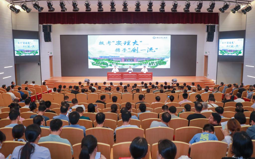 袁亮对淮南市教体局、淮南市9所高中的领导老师来校交流表示热烈欢迎和衷心感谢。他从一流的学科水平、一流的专业建设、一流的师资队伍、一流的科研平台、一流的人才培养、一流的开放办学、一流的学习环境、一流的生活保障以及广阔的国际交流平台等方面全面介绍学校发展情况。他指出,学校办学底蕴深厚、优势特色鲜明,建校79年来,先后培养5位中国工程院院士,34万名各行各业领军人物、技术骨干、优秀人才。近年来,学校在省委省政府的大力支持下,锚定“双一流”创建目标,践行“三有三进三到”办学理念,推深做实“四个融入”发展战略,大力推进科教融汇、产教融合、理工医交叉,学校高质量发展取得了一系列标志性成果。学校调整优化专业结构,工科专业占比超80%,对接新兴产业专业超70%,国家一流专业、特色专业、认证专业超60%;聚焦新质生产力创新人才培养,设立五大新兴学院,打造“本-硕-博”贯通培养机制,引育高层次人才团队,一流师资覆盖所有学科专业;本科招生规模连续6年居省属工科高校第一,毕业生升学率连年攀升,从2016年的16%提升到2023年31%,升学至“双一流”高校占比超50%,毕业生近80%在长三角就业创业。袁亮希望更多更优秀的淮南学生选择“安理大”,携手“创一流”。会上,袁亮还介绍了学校招生录取情况及转专业、奖助等政策,并就参会教师关心的问题同大家互动交流。活动现场气氛热烈,掌声不断。