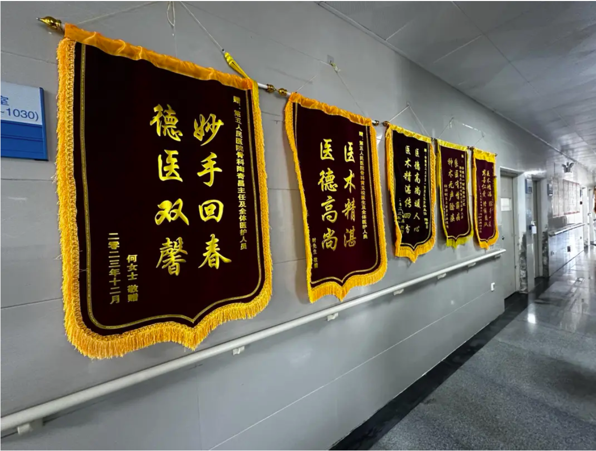 在市五院,“医德双馨,情系患者”“医术精湛,妙手回春”“良医有情解病,神术无声除疾”……一面面锦旗表达了患者对第一附属医院专家团队的赞誉和肯定,也见证了一个个患者救治的温暖故事。“省级三甲医院的专家在我们潘集坐诊,我们现在看病既方便又放心,再也不用往市里来回奔波了!”专家们的入驻,增强了患者对医院的认同感,也提升了医院的美誉度和影响力。