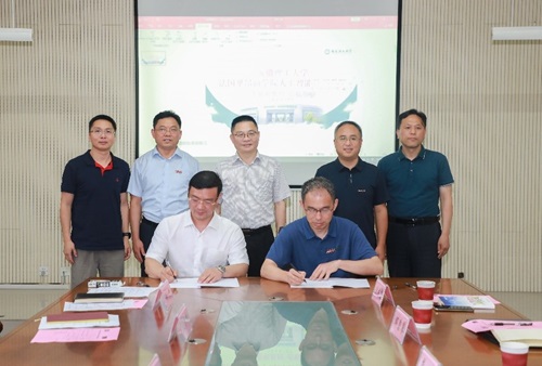 7月1日,法国里昂商学院人工智能管理学院龚业明院长一行五人来校交流访问并商讨合作。校党委副书记、常务副校长余玉刚在经管学院东102会议室会见了龚业明一行,并见证了合作备忘录的签署。