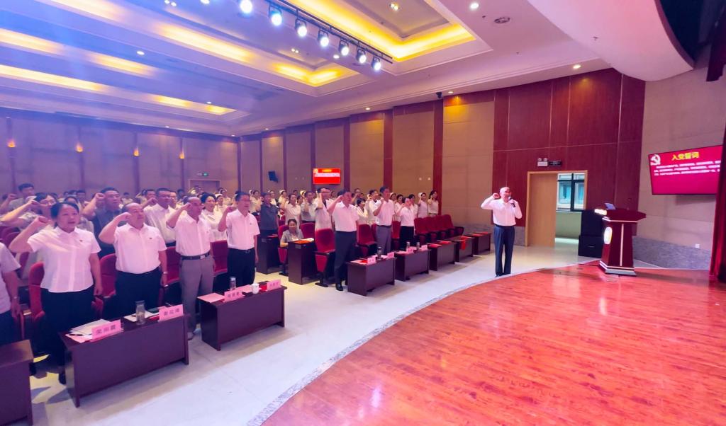 会上,全体党员重温入党誓词,党员们面向党旗,用誓词彰显永恒初心,牢记党员意识,永葆党员本色。