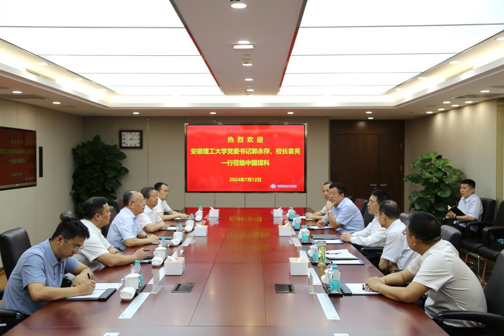 7月12日,校党委书记郭永存,党委副书记、校长袁亮院士在北京会见中国煤炭科工集团党委书记、董事长胡善亭,双方就国家科技创新平台联合重组、煤炭安全智能开采、校企合作展开座谈交流。中国煤炭科工集团科技委主任、中国工程院院士康红普,集团科技委副主任、中国工程院院士王国法参加会见。