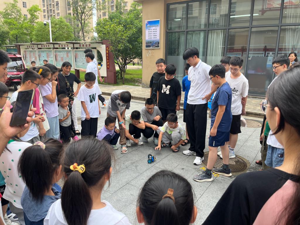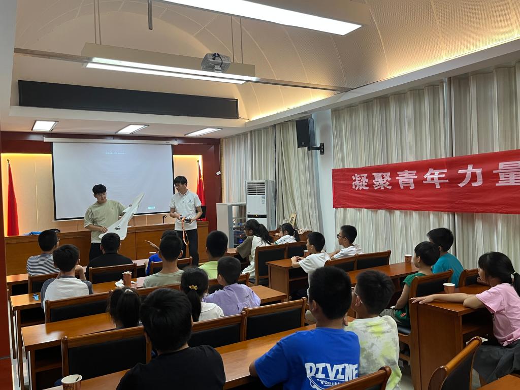 为助力乡村教育发展,弘扬科学精神,点燃科技梦想,7月15日下午,科普实践小组的志愿者们,结合其专业特色和社团科技元素,通过科普课堂和科普表演两种形式让同学们在轻松愉快的氛围中学习科学知识,感受科学魅力。志愿者们首先为小朋友们讲解了力学相关知识、航模飞行原理以及机器人构造组成等科学知识,启发式、互动式的授课方式引起了小学生们的共鸣,激发了其对科学知识的学习热情。随后,志愿者们又通过室外科普展演方式让小朋友们切身实际地感受科学的魅力和科技的力量。此次科普实践活动,在小朋友心中埋下了科学的种子,激起了科学梦想的火花。