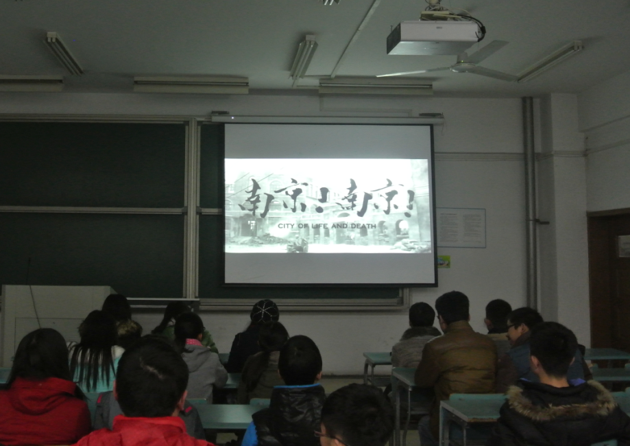 当晚,学院各班级组织召开主题班会,观看影片《南京!南京!》,回顾历史,不忘国耻。学院团委邵飞老师指出,同学们在缅怀遇难同胞和抗日期间牺牲的英烈的同时,也要努力学习工作,为实现伟大的中国梦而做出自己应有的贡献。