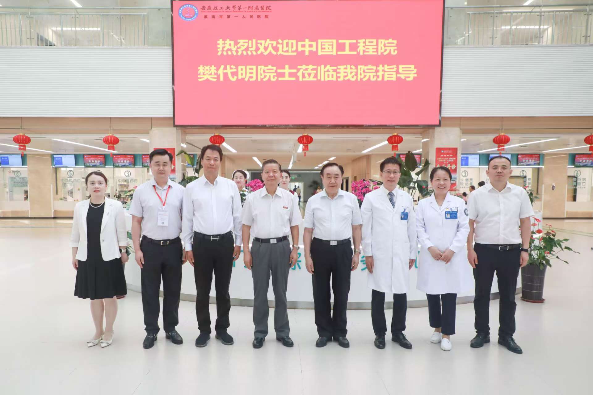 安徽理工大学第一附属医院南区是淮南市第一家按照第五代医院理念设计和建成的医院,也是目前淮南市建筑面积最大、条件最好、现代化水平最高的院区。樊代明院士详细了解医院办医定位、设计理念、科室分布和运营情况。在门诊大楼,他实地了解科室协同开诊情况;在病房大楼,他认真询问功能分区、设备配置、日常医疗服务情况;在医技、辅助科室,他实地查看高端医疗装备运行情况。每到一处,他结合实际情况与医务人员亲切交流,予以专业指导。他希望医院始终坚持以人民健康为中心,以高质量发展标准为引领,培育一流的专家人才团队,提升科研能力和技术水平,持续改进医疗服务、提高医疗质量,建设医教研协同发展的精品医院,着力打造特色鲜明的区域医疗中心,为患者提供全方位全周期的健康服务和医疗保障。