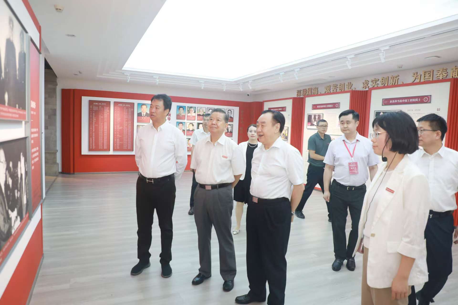 在校史馆,袁亮向樊代明介绍了学校光荣的办学历程、深厚的历史积淀、鲜明的学科特色,特别是近年来取得的跨越式发展成就。校史馆内,一张张历史图片、一件件文献实物、一个个逼真场景,生动呈现了学校筚路蓝缕、砥砺奋进的创业历程,樊代明不时驻足观看,询问历史背景与过程细节,了解学校人才培养、科技创新、文化传承,特别是服务国家能源建设和国民经济发展情况。在获悉学校推进一附院整建制划转,成立公共卫生学院,加强医学部建设,打造职业安全健康医学特色方向,支撑安全科学与工程优势学科建设的创新做法后,他对学校拓展新领域、新赛道,塑造新动能、新优势,推进高质量发展予以高度肯定。他期待与学校在整合医学领域加强合作,为引领医学学科创新发展,支撑学校“双一流”创建注入新能量、做出新贡献。