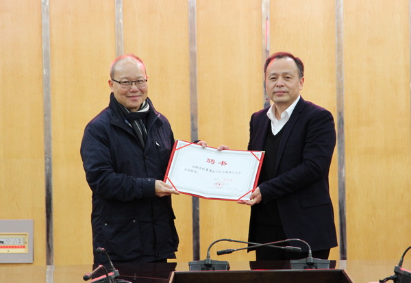 校长郭永存向英国皇家科学院院士刘富友教授颁发聘书 (摄影:吕祥勇)