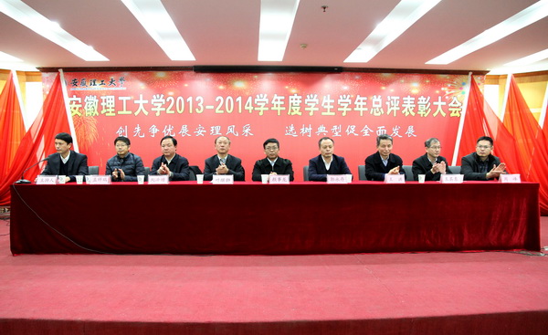 12月18日下午,2013-2014学年学生总评表彰大会在九楼报告厅隆重举行。校领导颜事龙、郭永存、叶醒狮、王洪、刘泽功、王其东、孟祥瑞、周峰出席表彰大会,并为获奖的先进集体和个人颁奖。