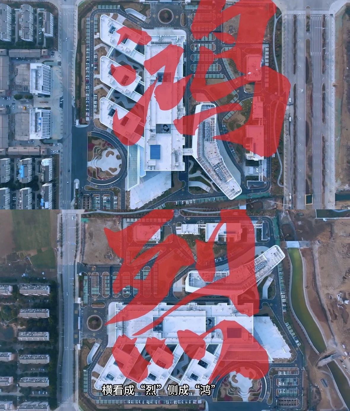 院区整体设计就是以淮南文化为根基,建筑规划形似“鸿”字“烈”字,从高空俯瞰整个院区横看成“烈”侧成“鸿”,力争打造一个以文化与新型科技、前沿医疗技术交融的三甲综合医院。