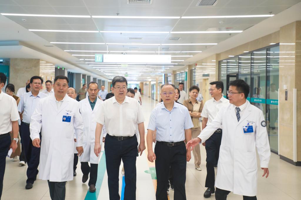 8月28日下午,淮南市委书记任泽锋到学校一附院南区调研,校党委书记郭永存陪同调研并介绍学校推动医教研协同,支撑淮南医疗卫生事业高质量发展情况。校党委常委、副校长鲁超,淮南市委常委、秘书长、政法委书记文见宝,淮南市副市长陆晞参加调研。