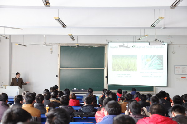 12月26日下午,应校科技产业处、国际交流与合作处和材料科学与工程学院邀请,我校客座教授、韩国韩瑞大学博士生导师吴沅春教授在新附2205教室作了题为《Nanochemistry and Nanomaterials Basic theory and examples(纳米化学与纳米材料的基本理论和实例)》的学术报告。报告会由高教研究所副所长徐初阳教授主持,材料学院研究生、本科生和部分师生共100余人参加了报告会。