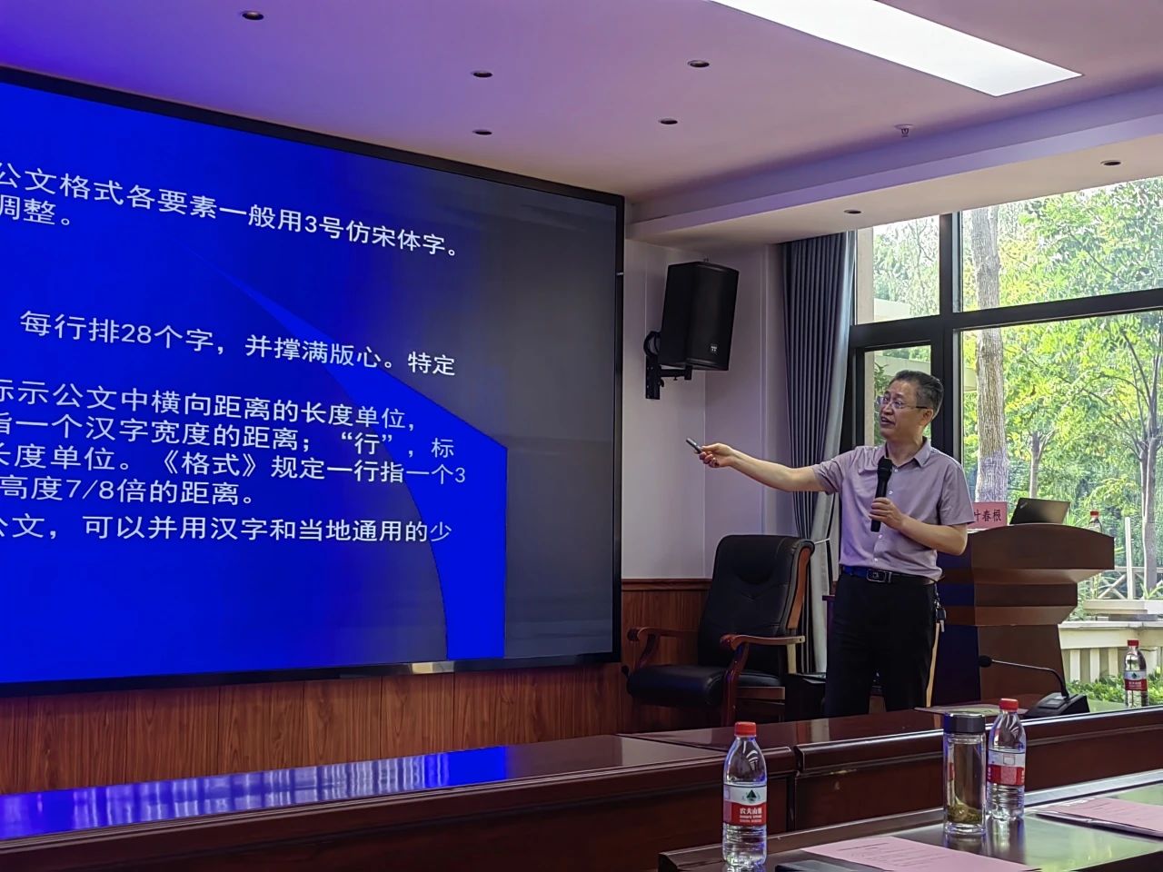 安徽医科大学叶春根副教授,结合自己多年的教学工作和公文写作实践经验,讲授《公文能力学做能力培训》,深入浅出地讲解了党政公文的类型和党政公文的格式两个方面的内容、重点党政公文的15种类型,重点讲述了党政公文的格式,并进行案例展示,细化到纸张要求、字体字号、排版、落款、页码、装订等。对公文写作综合能力提升给予了充分指导意义。