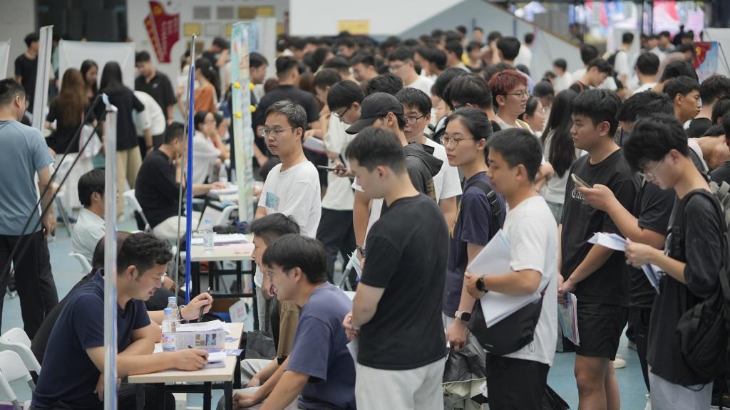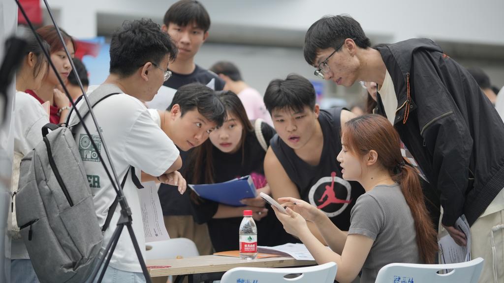 毕业生与用人单位代表洽谈交流(摄影:江山)