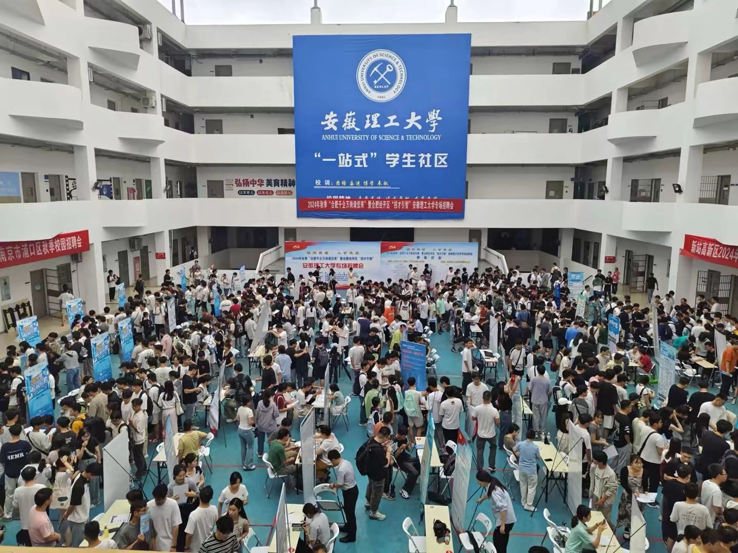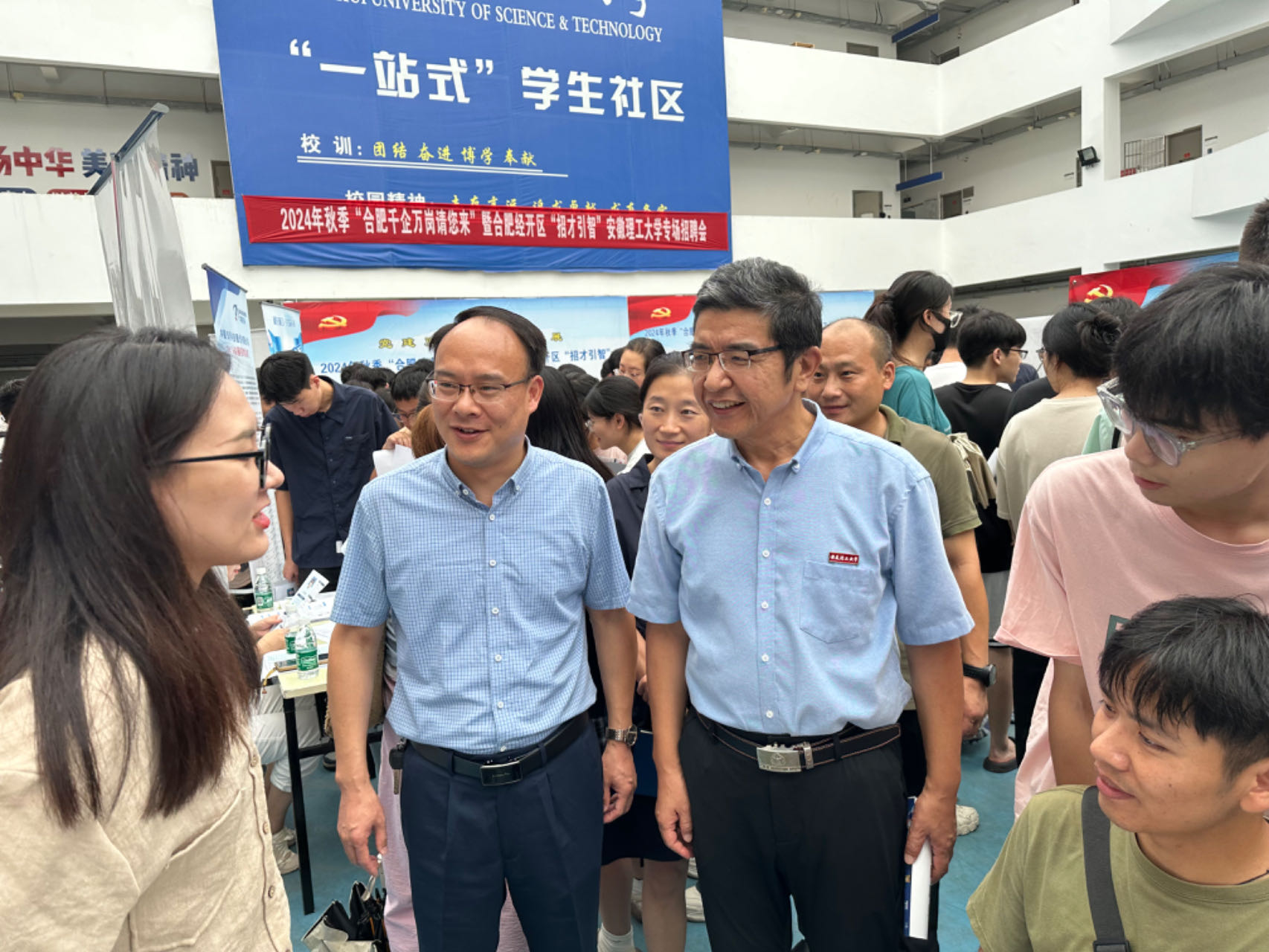 9月11日下午,由学校和合肥市经开区、新站区,南京市浦口区三地共同组织的2024年秋季“合肥千企万岗请您来”暨合肥经开区“招才引智”安徽理工大学专场招聘会、新站高新区2024年秋季合肥千企万岗请您来安徽理工大学站、“就在浦口 共筑未来 ”2024年南京市浦口区秋季校园招聘会在厚德馆大厅成功举办。校党委常委、副校长董雨到现场与用人单位代表深入交流,了解用人单位对我校人才培养、就业服务等方面的意见和建议。