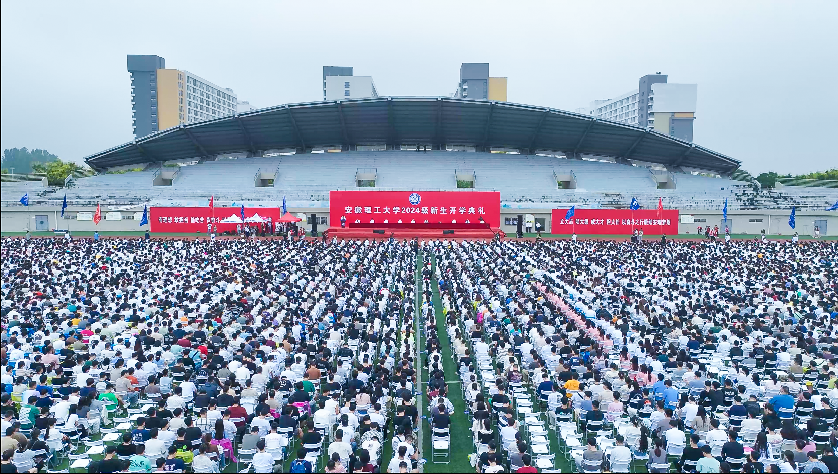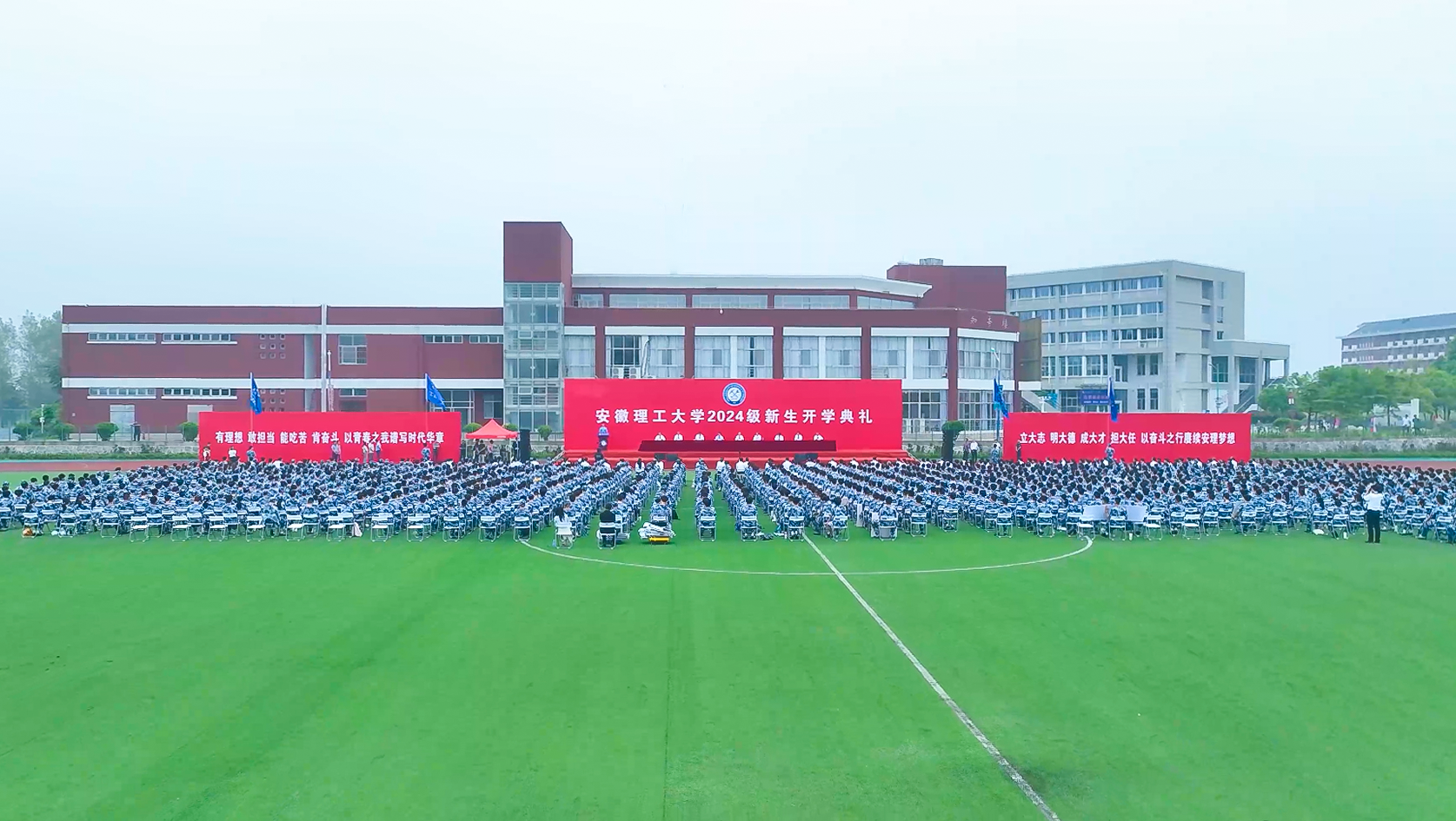 9月13日、14日上午,学校隆重举行2024级新生开学典礼,迎接一万余名青年学子开启人生新篇章。校党委书记郭永存,校党委副书记、校长袁亮院士,校党委常委、副校长宫能平、董雨、鲁超,校党委常委、纪委书记、监察专员王献余,校党委常委、副校长王先江、张平松等出席开学典礼,校友代表、淮河能源集团党委书记、董事长王世森,校友代表、中国水利水电科学研究院副院长王建华,优质生源基地代表、淮南第二中学党委副书记、校长杨洁应邀出席典礼,与2024级全体新同学共同见证这一美好时刻。宫能平主持开学典礼。