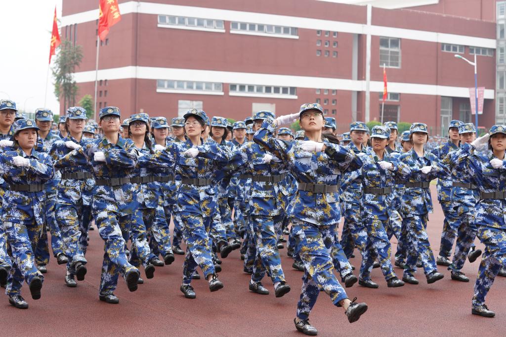 伴随着激昂雄壮的阅兵进行曲,军训团方阵在国旗、校旗方队的引领下,依次通过主席台接受检阅。他们目光坚毅,英姿飒爽,步伐铿锵有力,动作整齐划一,充分展示了军训刻苦训练取得的丰硕成果,尽显新时代安理青年坚毅、勇敢、团结的精神风貌,赢得在场师生的阵阵掌声。
