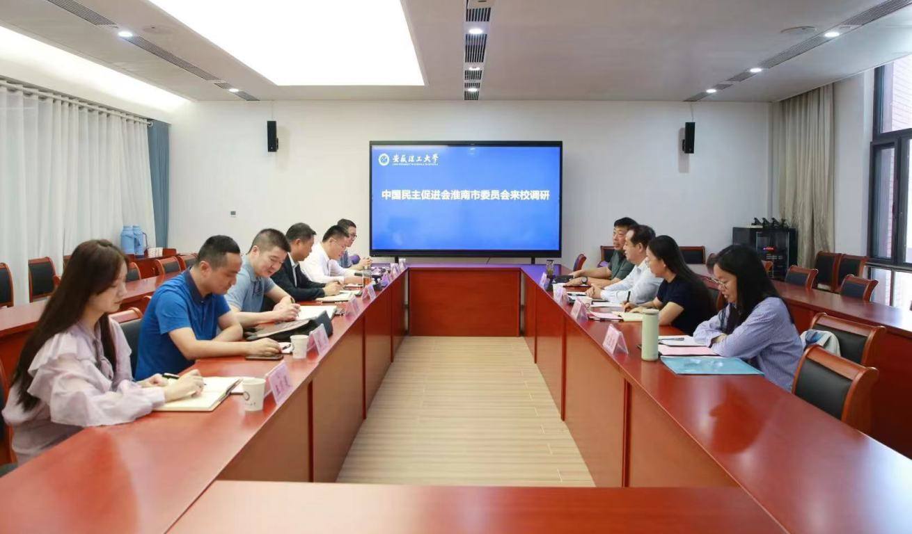 9月25日上午,淮南市政协副主席、民进淮南市委会主委张天舒一行4人来校调研,校党委常委、副校长鲁超与客人亲切座谈交流。