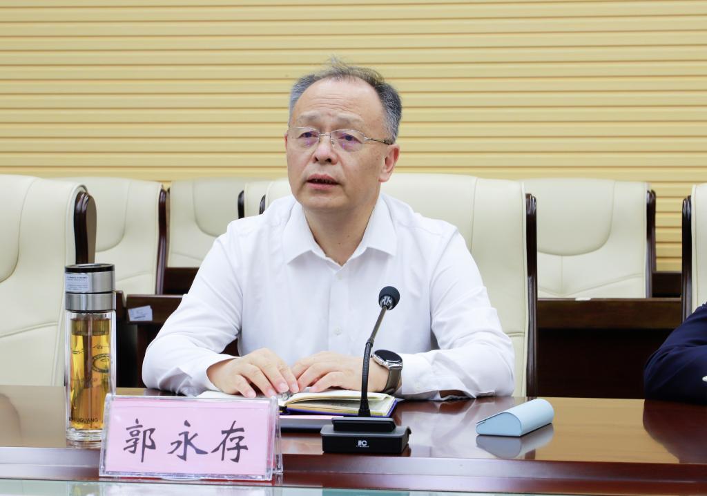 郭永存对姚群来校调研表示欢迎,对省科技厅长期以来关心支持学校发展表示感谢,并简要介绍了有关工作开展情况。他表示,学校将深入学习贯彻党的二十届三中全会精神和省委十一届七次全会精神,聚焦国家重大战略需求和区域经济社会发展需要,充分发挥学科交叉融合优势,加强有组织的科研,加快科技创新成果转化应用,为我省“三地一区”建设提供人才和智力支撑。