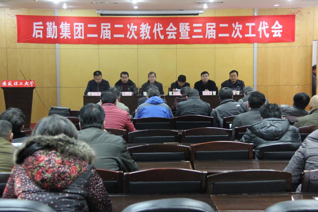 大会在激昂的国歌声中拉开序幕。王其东代表学校对后勤集团二届二次教代会暨三届二次工代会的召开表示热烈祝贺。他对集团过去一年各项工作所取得的成绩给予了充分肯定。他指出,大会的召开为促进广大教职工共同学习、共同交流提供了一个重要平台,对提升集团的凝聚力和创造力有着重大的意义。他希望集团领导班子继续发扬民主、勤奋务实的作风,认真领会党的十八大,十八届三中、四中全会精神和习近平总书记系列重要讲话精神,集思广益、凝心聚力,全面推进后勤管理服务水平再上新台阶。
