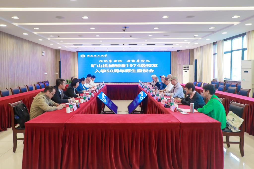 九九重阳风轻扬,丛丛金菊染轻霜。登高望远秋水长,一怀思念任飞翔。10月11日,矿山机械制造1974级校友入学50周年座谈会在舜耕苑会议室隆重举行。10余名年逾七旬的校友时隔半个世纪、跨越千山万水再次欢聚一堂,寻回忆,叙情谊。校党委书记郭永存出席座谈会并讲话。