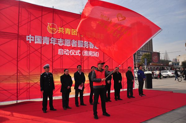 2月6日上午,淮南团市委等有关部门在淮南火车站广场举行青年志愿者服务春运“暖冬行动”启动仪式。市政协副主席许治安出席仪式并为我校春运志愿者服务队授旗,正式拉开了2015年春运志愿服务的序幕。