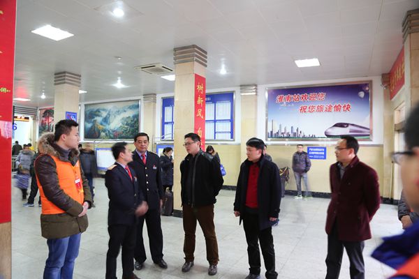 服务的过程有苦趣,也有乐趣;有感动,也有鼓舞。各级领导的关怀和指导也让志愿者们激动不已,让他们一直保持高昂的斗志,扎实工作。上海铁路局团委书记李业明专程赴淮南站考察春运志愿服务工作,高度赞扬了春运志愿者踏实、敬业的工作态度。校团委负责同志也在春节期间看望慰问了春运志愿者们,为他们加油鼓劲。淮南站党支部书记白永林更是动情地说道:“孩子们真的辛苦了,他们放弃了假期休息玩耍的时间,与我们这些铁路职工们一起战斗在春运第一线。为了尽快疏散乘客,孩子们甚至连中午吃饭的时间都没有。他们的坚持与付出我们都看在眼里,记在心里!”