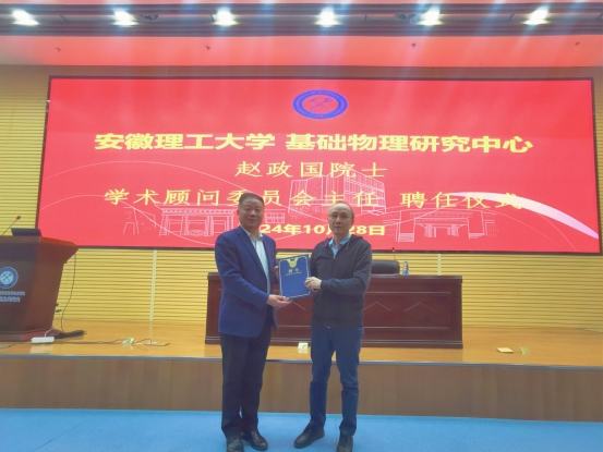 报告会开始之前,举行了安徽理工大学基础物理研究中心学术顾问委员会主任聘任仪式,宫能平代表学校宣读了聘任文件并向赵政国颁发了聘书。