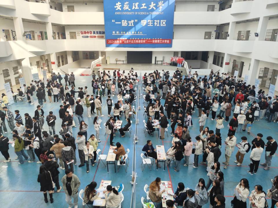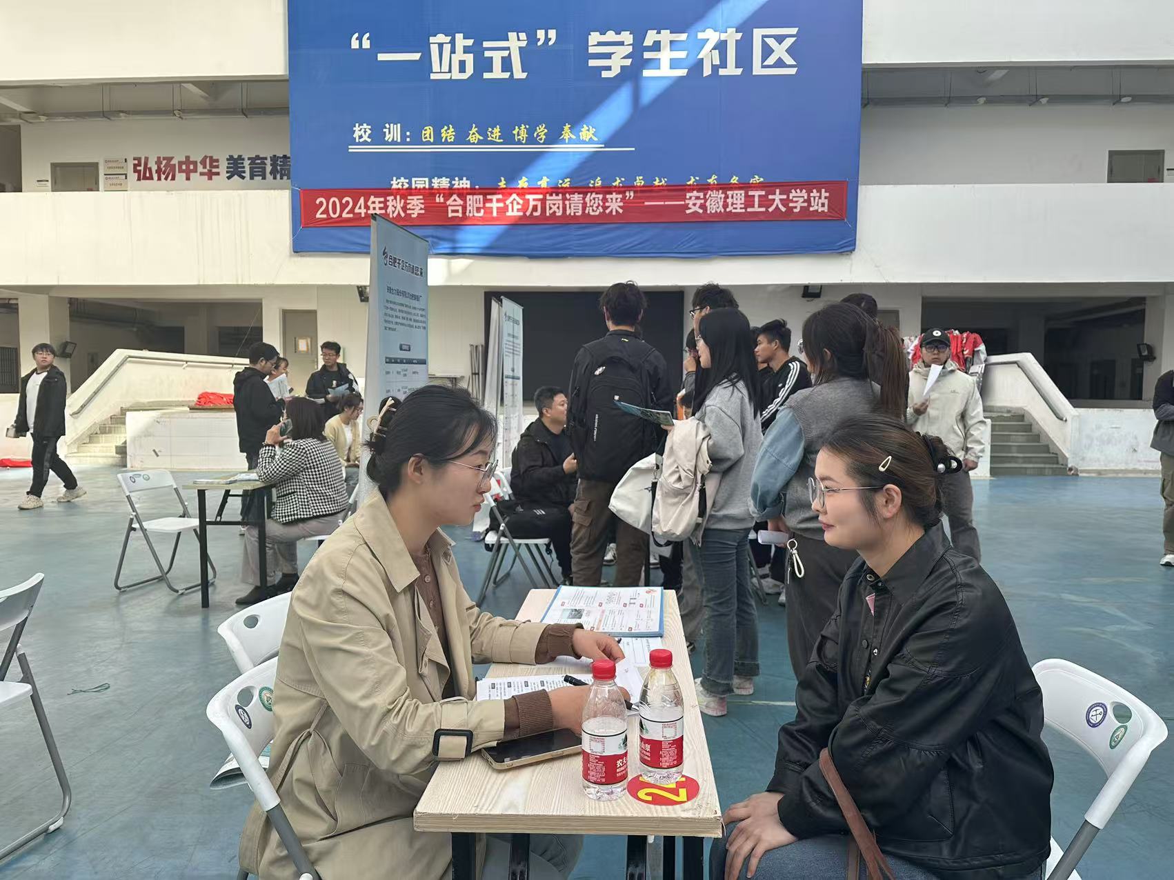 本次招聘会共有40家合肥市本地优质企业参加,参会单位层次高、领域宽、岗位需求广泛,包括合肥国轩电池有限公司、安徽江淮专用汽车有限公司、合肥协鑫集成新能源科技有限公司、合肥综合性国家科学中心(安徽省能源研究院)、合肥万力轮胎有限公司等,涵盖新型显示、集成电路、新能源汽车、装备制造、光伏、IT、人工智能等多个重点产业和领域,提供岗位数量1117个。招聘现场供需两旺,秩序井然。毕业生与企业招聘负责人围绕岗位要求、薪资待遇、晋升通道等问题进行充分交流。在安徽元琛环保科技股份有限公司展位前,招聘经理表示:“安徽理工大学的毕业生留得住,用得好,做事认真负责,所以我们春、秋两季都会来贵校招聘。”