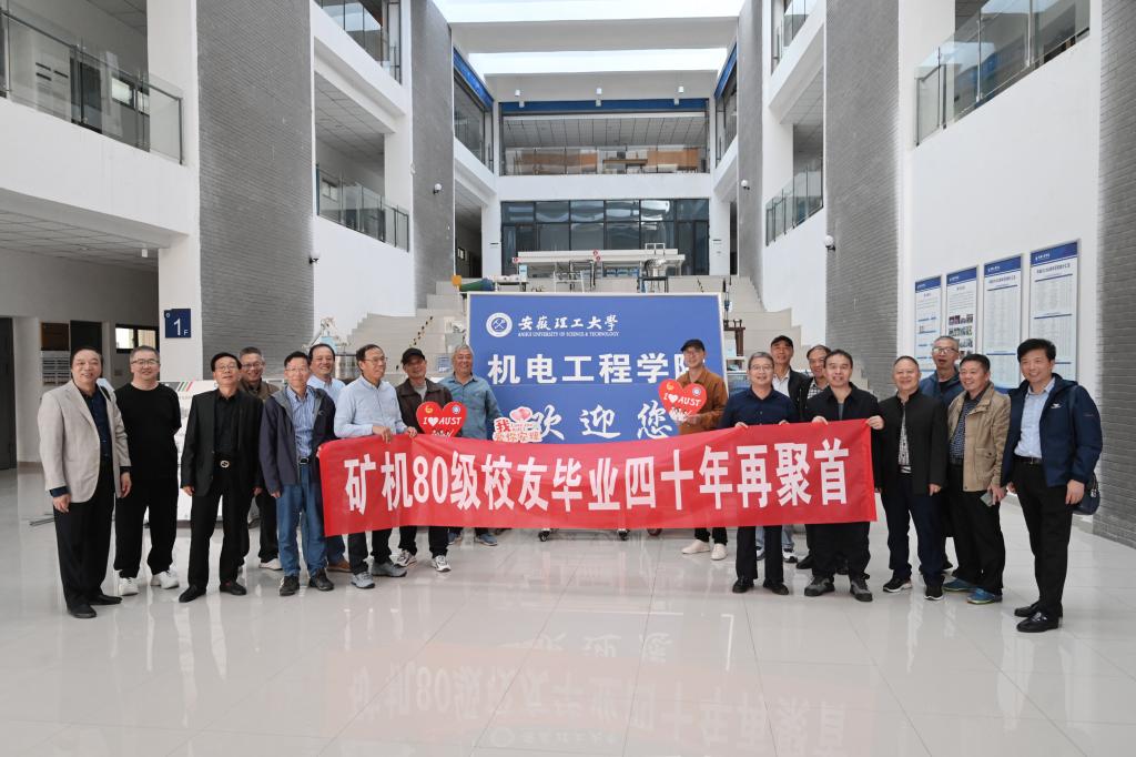 机电工程学院主要负责人向校友们汇报了学院近年来建设发展情况。煤矿机械制造1980级团支书吕一中代表返校校友发言。