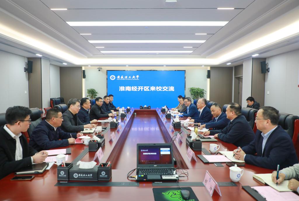 淮南市经开区党政办公室、商务科技局、社会发展局、经济发展局等负责人,学校党政办公室、人事处、科研部、研究生院、大学科技园等负责人参加座谈交流。