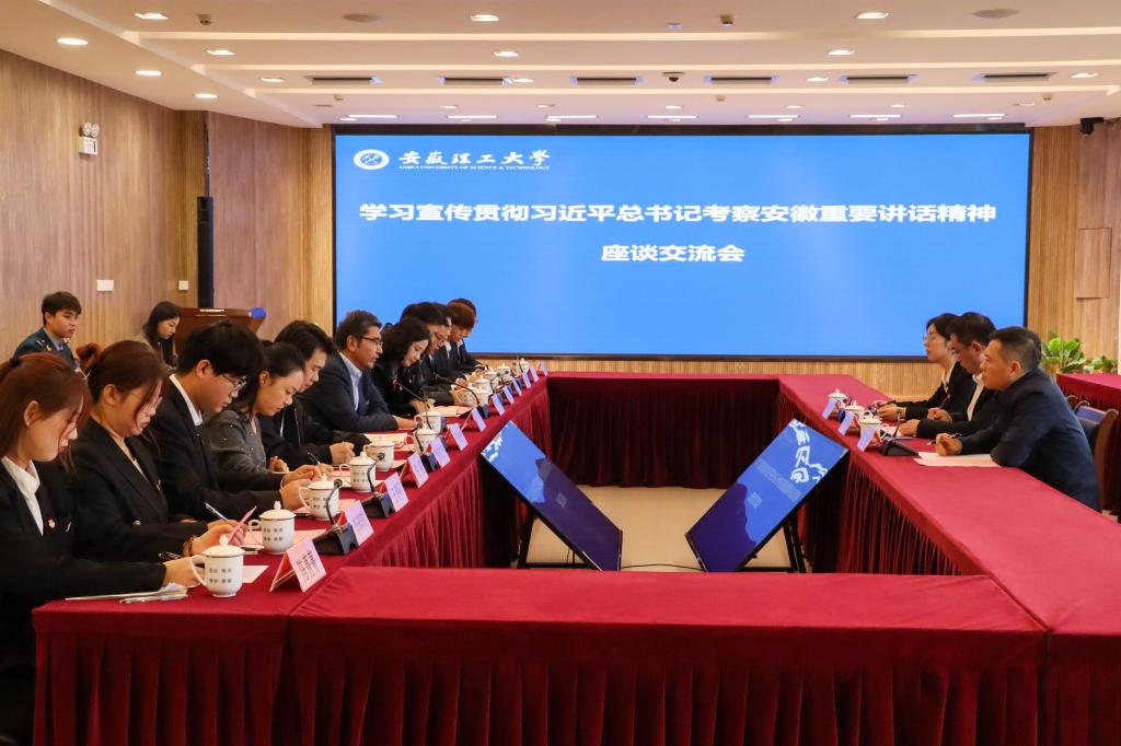 校团委主要负责人介绍了近年来学校共青团围绕中心、服务大局,创造性开展了一系列着眼长远、卓有成效探索实践的工作情况。学院团委书记代表、青年教师代表、学生组织代表等聚焦“习近平总书记考察安徽重要讲话精神”这一背景,结合青年典型选树、学科建设、科技成果转化、乡村振兴、职业规划、创新创业等工作实际,汇报了学习体会、感想感悟和思考思路。