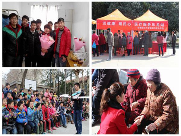 “把有限的生命,投入到无限为人民服务之中去。”是雷锋一生践行的誓言。在各级党组织、党员干部的带领下,团组织和广大团员青年也积极通过系列志愿服务活动,把温暖和祝福送给人民群众。测绘学院测绘13-1班团支部和地信13-1班团支部带着鲜花和礼品走访慰问宿管阿姨,感谢她们日常的辛勤付出;材料科学与工程学院的青年志愿者在北校区学生公寓旁组织开展义务植树活动,践行生态环保理念;大学生机器人协会和航模协会的同学走进安徽理工大学附属小学开展科普宣传活动,受到300多名小学生和家长的欢迎;能源与安全学院团委联合淮南第一人民医院组织青年志愿者走进龙湖社区,开展健康宣传和义诊活动;经济与管理学院组织青年志愿者们到淮南火车站为出行旅客提供便捷服务;化学工程学院组织青年志愿者在元宵节走进舜耕镇敬老院、理工大社区看望孤寡老人,给老人们送去关怀和祝福。