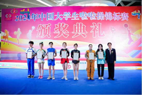11月19日,由中国学生体育联合会主办、儋州市旅游和文化广电体育局承办的2024年中国大学生啦啦操锦标赛在海南省儋州市海花岛会议中心落下帷幕。经过激烈比拼,我校啦啦操队获得规定动作集体混合技巧冠军,自选动作小团体(混合)技巧亚军,规定动作小团体技巧季军,自选动作双人民族风格舞蹈、自选动作双人高踢腿舞蹈第八名的优异成绩,学校获得体育道德风尚奖。