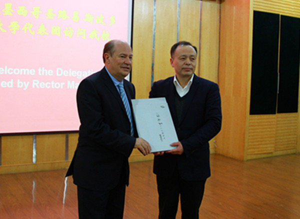 3月17日,校长郭永存教授在图书馆北会议室亲切会见了来校访问的墨西哥圣路易斯波多西自治大学校长Manuel Villar一行6人。副校长王其东教授主持会议。