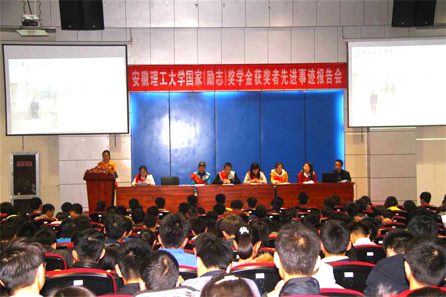 3月22日晚,学校2014年度国家(励志)奖学金获奖者先进事迹首场报告会在北区图书馆二楼报告厅隆重举行。副校长叶醒狮出席报告会。