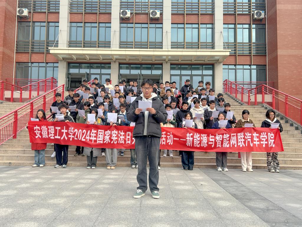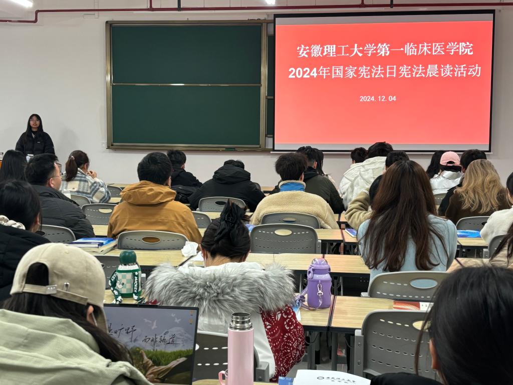 为深入学习贯彻党的二十大精神和党的二十届三中全会精神,贯彻落实习近平法治思想和习近平总书记关于宪法的重要论述,12月4日7时许,学校千余名青年学生代表在学院楼、教学楼、厚德馆等场所开展“宪法晨读”活动,迎接第十一个国家宪法日。