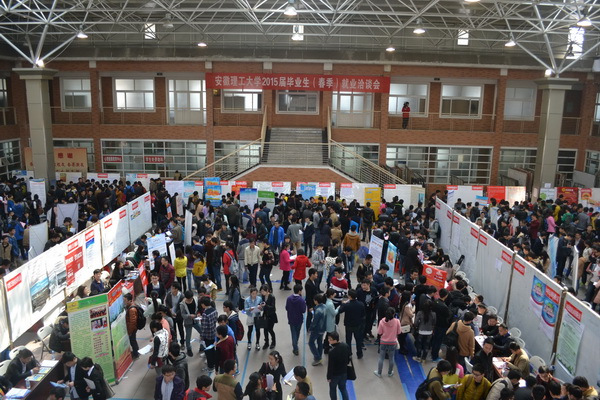 3月28日上午,校2015届毕业生春季就业洽谈会在大学生素质教育中心和大学生创业基地同时举行。146家用人单位326名代表应邀来校招聘毕业生,提供岗位5000多个。合肥市人才中心、芜湖市人才服务中心、萧山区人才服务中心、金寨县人力资源和社会保障局共组织34家单位出席洽谈会。2015届毕业生3000多人次进场和用人单位洽谈,现场签约100多人。近1000名毕业生与用人单位达成就业意向。