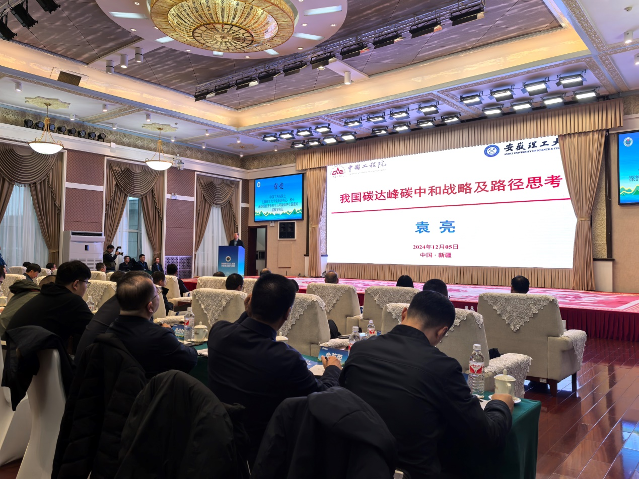 12月5日,“加强煤田火区治理 协同推进减污降碳”专业论坛在乌鲁木齐举行,校党委副书记、校长袁亮院士受邀参加论坛并作《我国碳达峰碳中和战略及路径思考》主旨报告。中国工程院院士彭苏萍,新疆大学校长姚强,新疆工程学院校长王增国,新疆工程学院副校长冉进财,中国环境科学研究院原副院长柴发合等领导院士专家参会。新疆维吾尔自治区生态环境厅厅长哈尔肯·哈布德克里木主持论坛,自治区人民政府副主席朱立凡致辞。
